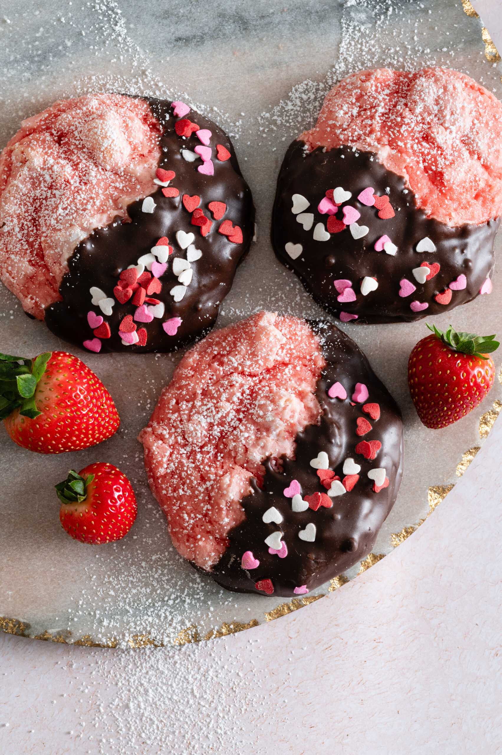 Love is in the air and we’ve got the sweetest treat for you! Grandma’s Chocolate Covered Strawberry cookie is soft, tender and beautifully dressed! Each cookie is dipped in smooth milk chocolate, dusted with powdered sugar and showered with mini heart sprinkles. It’s the perfect blend of fruity sweetness and rich chocolate, made to share….or keep all to yourself!